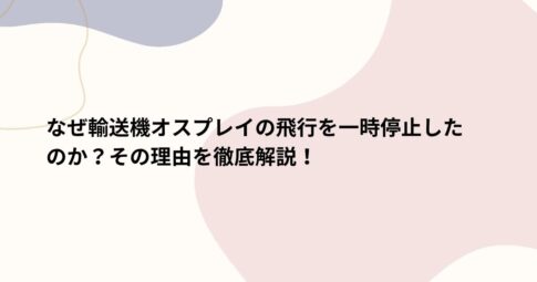 社会はじめに 2024年12月9日、アメリカ海軍は輸送機オスプレイの飛行を一時停止すると発表しました。 この決定は安全確保のための追加措置の必要性を判断するためのもので、具体的な理由や停止期間は明らかにされていません。 本記...