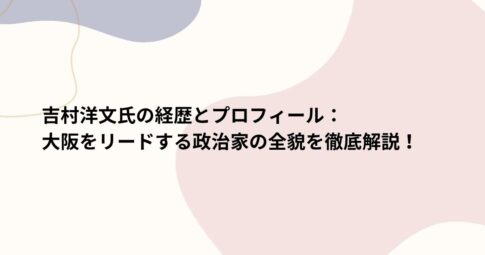 社会はじめに 吉村洋文(よしむら ひろふみ)氏は、日本の政治界で注目を集める人物の一人です。 大阪府知事として地域改革を推進し、その実績が全国的な評価を受けています。 本記事では、吉村氏の生い立ちや経歴、政治家としての実績、...