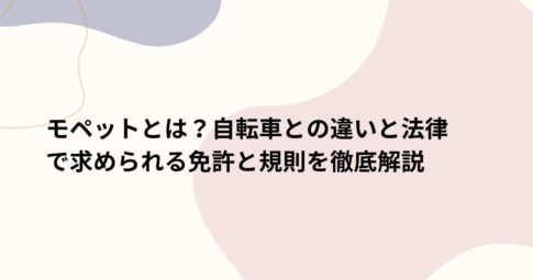 社会はじめに 最近、街中でよく見かける「モペット」。 ペダルを漕いで走る自転車に見えますが、実はそれとは大きく異なり、法律上は「原動機付き自転車」として扱われています。 モペットの特徴や、自転車との違い、そして公道で運転する...