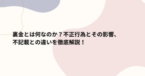 社会はじめに ビジネスや政治の世界でしばしば耳にする「裏金」という言葉。 裏金は一般的に不正な資金の流れを指しますが、その詳細についてはあまり知られていないかもしれません。 裏金の使用は、多くの場合、企業や政府の活動において...