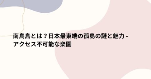 社会はじめに 太平洋の果てに、ほとんど誰も近づいたことのない小さな島。それが南鳥島です。 日本の最東端に位置するこの孤島は、地図上では些細な一点に過ぎませんが、その実、驚くべき謎と可能性に満ちています。 目にすることさえ難し...