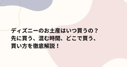 旅行はじめに ディズニーリゾートに行くと、楽しいアトラクションやショーだけでなく、お土産選びも大きな楽しみのひとつですよね。しかし、「お土産はいつ買うべき?」「混雑する時間帯は?」「どこで買うのが便利?」といった悩みを抱える...