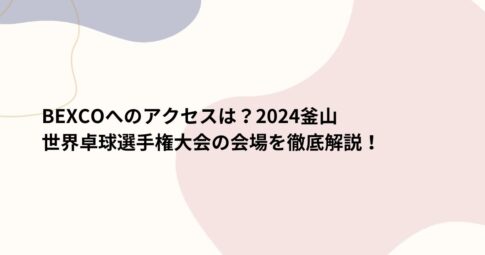 スポットはじめに 韓国・釜山にある国際的な展示・イベント会場「BEXCO(ベクスコ)」は、世界中から多くの訪問者を迎える場所として知られています。特に、2024年に開催される釜山世界卓球選手権大会の会場として、卓球ファンにとって...
