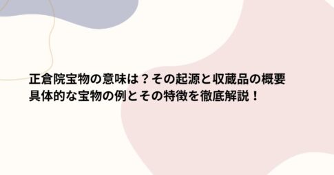 スポットはじめに 奈良・東大寺の正倉院には、1300年以上の歴史を持つ貴重な宝物が数多く納められています。これらの宝物は、シルクロードを経由してもたらされた異国情緒あふれる品々や、聖武天皇ゆかりの品まで、歴史と芸術の粋を極めたも...
