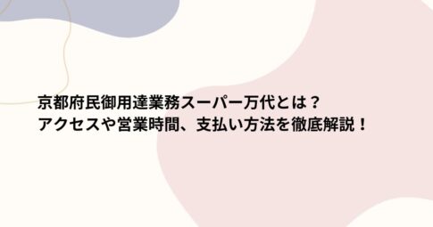 スポットはじめに **京都府民に親しまれる「業務スーパー万代」**は、リーズナブルな価格と豊富な品揃えで人気のスーパーマーケット。業務スーパーとしての特徴を持ちつつ、一般の家庭でも使いやすい商品が充実しており、地元の人々の生活に...