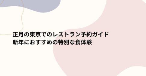 社会はじめに 正月の東京でのおすすめのレストランについてご紹介します。 新年を迎える特別な日に、東京で贅沢な食事を楽しんでみませんか? お正月には、多くのレストランが限定メニューや特別なイベントを提供し、特別な食体験が味わえ...