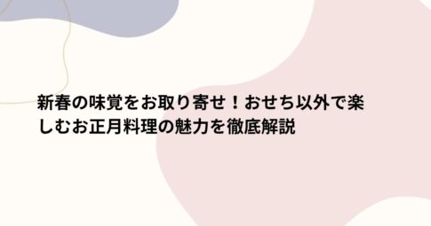 社会はじめに おせち以外で楽しむお正月料理の魅力についてご紹介します。 お正月といえば、おせち料理が定番ですが、実はそれだけではありません。 新春には、地域ごとの特別な料理や旬の食材を使った美味しいメニューがたくさんあります...