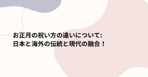 社会はじめに 日本と海外のお正月の祝い方の違いについてご紹介します。 お正月は世界中で特別な意味を持つ祝日ですが、日本と海外ではその祝い方にさまざまな違いがあります。 この記事では、日本のお正月の伝統的な習慣と、海外の新年の...