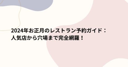 社会はじめに 新年を迎えると、多くの人々が家族や友人と特別な時間を過ごすためにレストランを訪れます。 しかし、お正月はレストランが非常に混雑し、予約が難しくなる時期でもあります。 この記事では、2024年のお正月にレストラン...