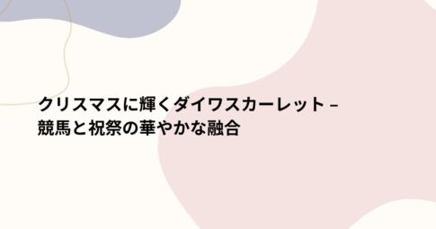 社会はじめに クリスマスに輝くダイワスカーレットについてご紹介します。 クリスマスの時期、特別な祝祭の雰囲気が漂う中、競馬界でも華やかなイベントが開催されます。 その中でも特に注目を集めるのが「ダイワスカーレット」です。この...