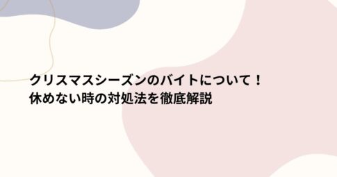 社会はじめに クリスマスシーズンのバイトで休めない時の対処法についてご紹介します。 クリスマスシーズンは、特別なイベントやお祝いが盛りだくさんですが、多くの人にとってはバイトシーズンでもあります。 特に飲食店や小売業では、需...
