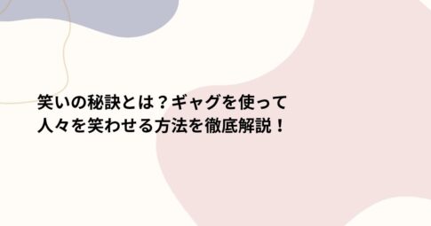社会はじめに 笑いの秘訣でギャグを使って人々を笑わせる方法についてご紹介します。 笑いは人と人をつなぎ、場の雰囲気を一気に明るくする魔法のような力を持っています。 そんな笑いを生み出すギャグやユーモアには、コツやテクニックが...
