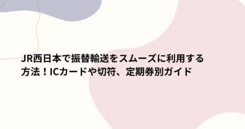 社会はじめに JR西日本で振替輸送をスムーズに利用する方法についてご紹介します。 電車の遅延や運休時に活用できる振替輸送は、JR西日本の利用者にとって重要なサービスです。 しかし、その利用方法は必ずしも明確ではなく、特に慌た...