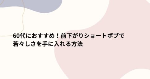社会はじめに 「60代におすすめ!前下がりショートボブ」についてご紹介します。 60代の髪型に関して、こんなお悩みはありませんか? この記事ではこのようなお悩みや疑問を解決していきます。 「60代におすすめ!前下がりショート...
