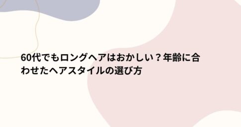 社会はじめに 年齢を重ねると、自分自身のスタイルについて多くの疑問が浮かびます。 特に、60代になると「ロングヘアはもう若々しくない、だから避けるべき」というような社会的なプレッシャーも感じられることがあります。 しかし、年...