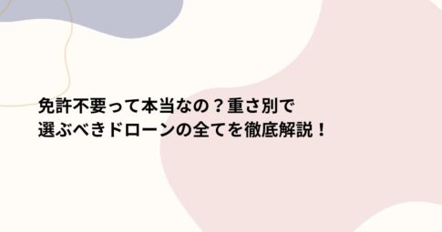 社会はじめに ドローンの世界へようこそ! 最近では趣味や仕事で使用する人が増えていますが、「免許は必要なの?」「どんな重さのドローンを選べばいいの?」といった疑問をお持ちの方も多いのではないでしょうか。 この記事では、ドロー...
