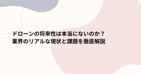社会はじめに ドローン技術の急速な発展と共に、その将来性に疑問を投げかける声も聞かれるようになりました。 「ドローンブームは一過性のものなのか?」「この業界に本当に未来はあるのか?」そんな疑問や不安を抱える方も少なくないでし...