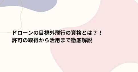 社会はじめに ドローンの進化により、目視外飛行(Beyond Visual Line of Sight, BVLOS)が現実的な選択肢となっています。 しかし、この目視外飛行には特定の資格や許可が必要です。 この記事では、「...