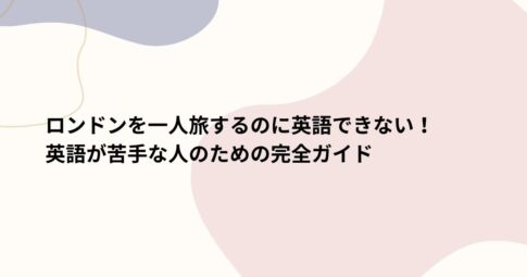 社会はじめに ロンドンを一人旅するのに英語ができないことについてご紹介します。 英語が苦手でも、ロンドンを一人旅してみたい!そんな夢を叶えるための完全ガイドをお届けします。 ロンドンは観光地として人気が高く、英語が話せなくて...