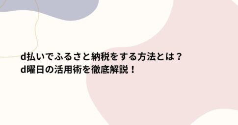 はじめに d払いでふるさと納税をする方法、d曜日の活用術についてご紹介します。 d払いを利用してふるさと納税を行うことで、手軽に寄付ができるだけでなく、ポイント還元などの特典も享受できます。 特に「d曜日」を活用すること...