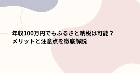 年収100万円でもふるさと納税は可能?メリットと注意点を徹底解説