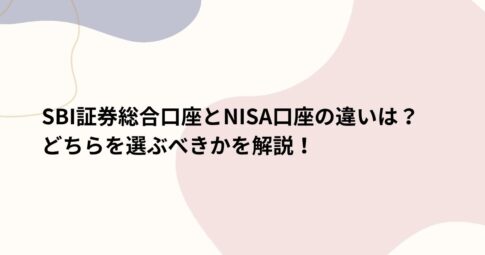 はじめに SBI証券総合口座とNISA口座の違いについてご紹介します。 投資を始める際、口座選びは非常に重要なステップです。 特に、SBI証券が提供する総合口座とNISA口座は、異なる特性とメリットを持つため、自分の投資...