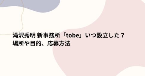 はじめに 元ジャニーズ事務所の副社長として活躍した滝沢秀明さんが、新たに設立した芸能事務所「TOBE」。その設立時期や所在地、事務所の目的に注目が集まっています。 さらに、アーティストやタレントを志望する人々にとって、応...