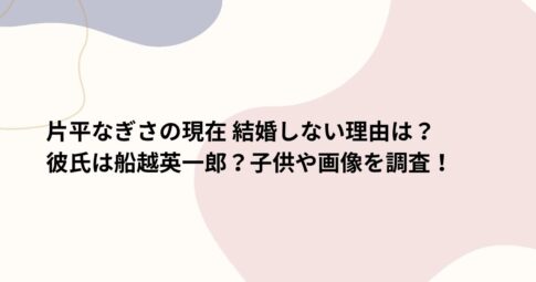 芸能はじめに 女優として長いキャリアを誇る片平なぎささん。現在の活動状況や、結婚しない理由について多くの関心が寄せられています。 さらに、彼女の私生活についても注目されており、彼氏として名前が挙がる船越英一郎さんとの関係や、...