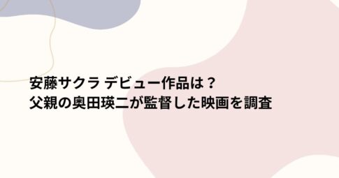 はじめに 実力派女優として数々の話題作に出演している安藤サクラさん。そのデビュー作品や、父・奥田瑛二さんが監督を務めた映画について注目が集まっています。 女優としての第一歩を踏み出した作品は何だったのか?また、父親が手掛...