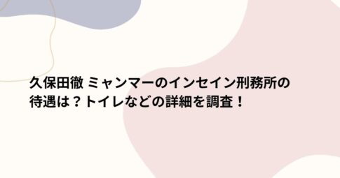 芸能はじめに ミャンマーのインセイン刑務所といえば、その過酷な環境で知られていますが、日本人の久保田徹さんが収容されたことでも注目を集めています。 そこで、刑務所内の待遇やトイレなど、具体的な生活環境について詳しく調査しまし...