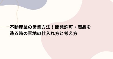 不動産はじめに 不動産業の営業方法についてご紹介します。 不動産業における成功の鍵は、的確な営業方法と戦略的な仕入れにあります。 特に、開発許可を得るための手続きや、魅力的な商品を作り上げるための「素地」となる土地の仕入れ方は...