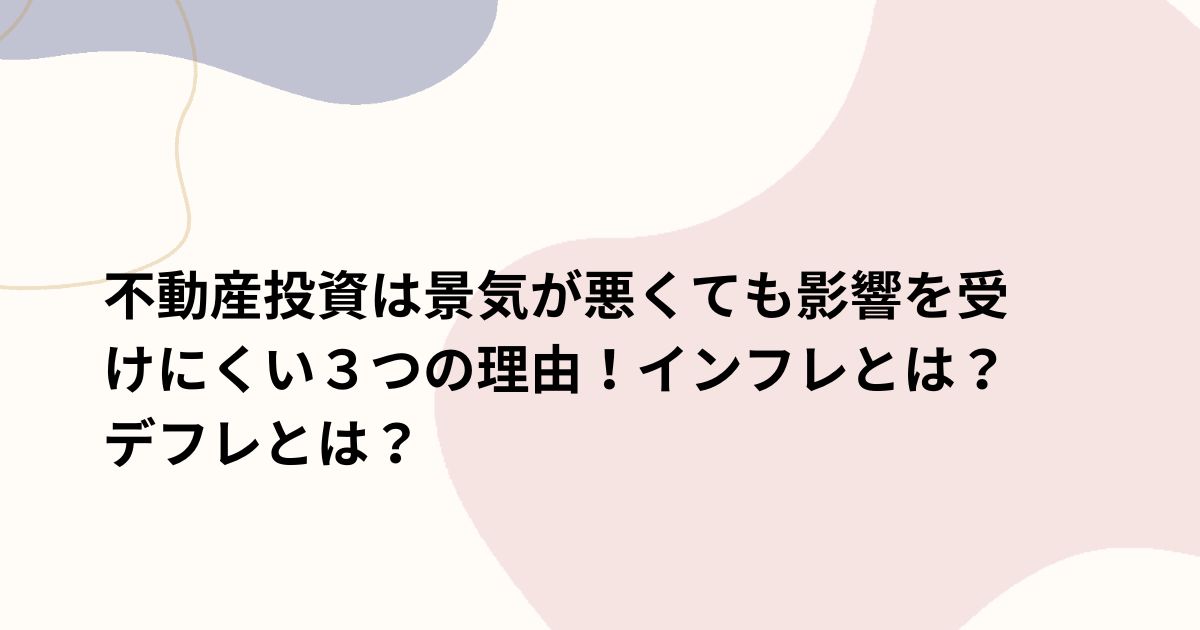 今回は不動産投資は景気が悪くても影響を受けにくい3つの理由!インフレとは?デフレとは?ということを解説しました。