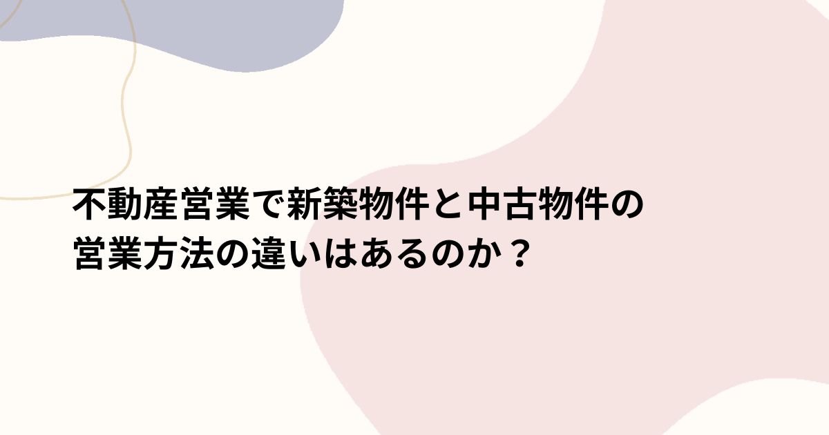 不動産営業において、新築物件と中古物件では営業方法にどのような違いがあるのでしょうか。