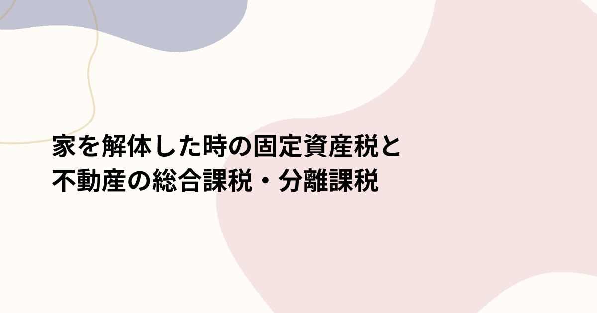 解体後の土地には特例が適用されなくなる場合があり、税額が増加することも。また、不動産にかかる税金には総合課税と分離課税があり、それぞれ異なる計算方法が存在します。