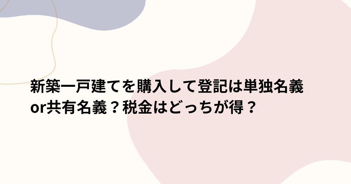 新築一戸建てを購入する際、登記を単独名義にするか、共有名義にするかで悩む方は多いのではないでしょうか。