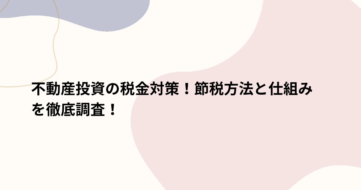 本記事では、不動産投資における税金対策や節税方法、そしてその仕組みについて徹底的に調査し、実践的なアドバイスを提供します。