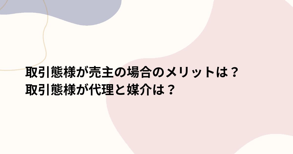 本記事では、特に「売主」として取引される場合のメリットを中心に、代理や媒介との違いについて詳しく解説します。