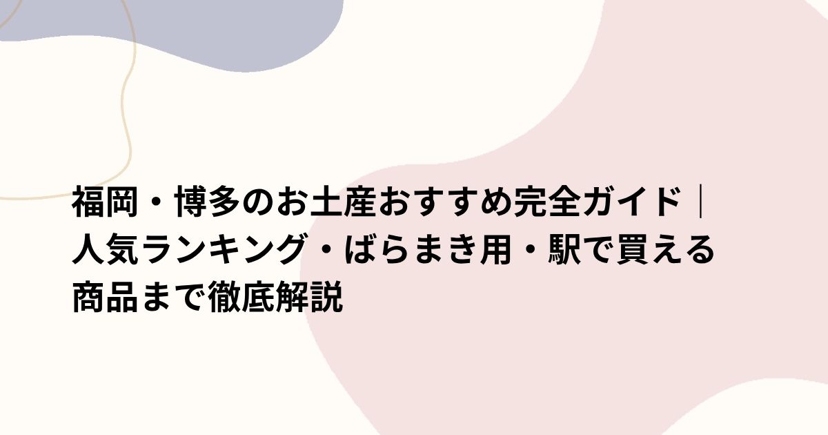 今回は、贈る相手やシーンに合わせて、絶対に喜ばれる福岡土産を徹底解説します。