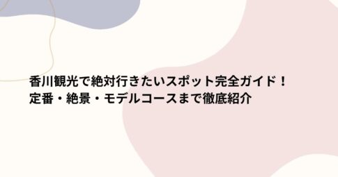 香川の旅を充実させるポイントは、**「前半は高松でアクティブに島・うどん巡り、後半は琴平で温泉三昧」**といったメリハリのあるプランニングです。