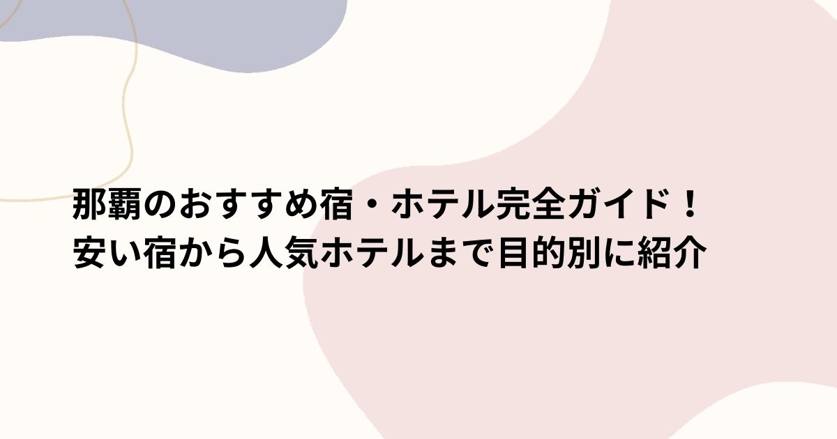 那覇の宿選びは、**「何をメインにするか」**で決めるのが成功の鍵です。