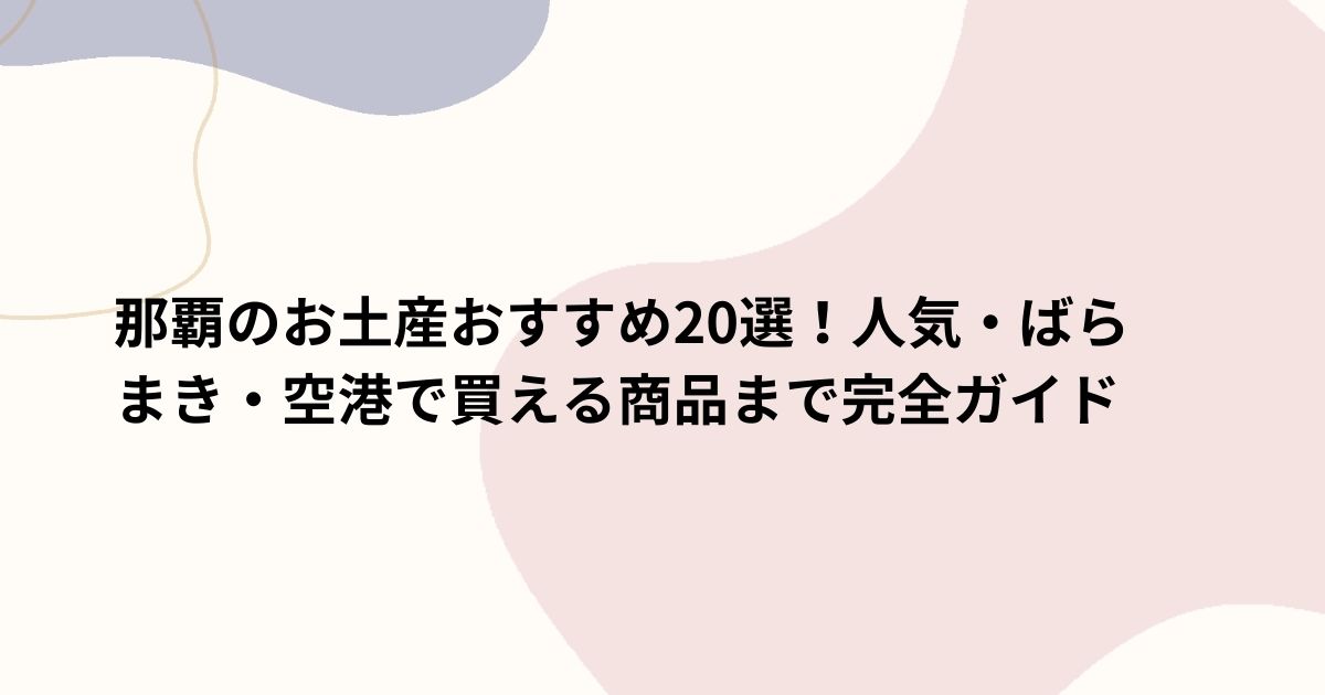 那覇のお土産選びは、**「渡す相手」と「購入タイミング」**を意識するのがポイントです。