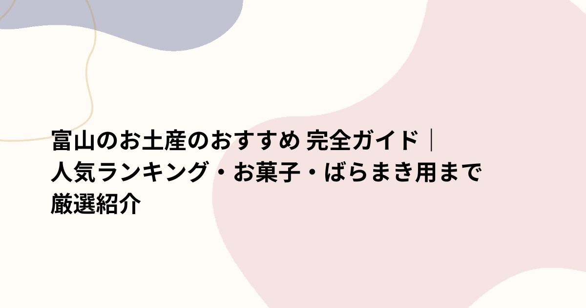 立山連峰の豊かな恵みと富山湾の海の幸が集まる富山県。古くから「くすりの街」として知られるだけでなく、伝統的な和菓子から最新のスイーツ、そして絶品の海産物まで、魅力的なお土産が数多く揃っています。