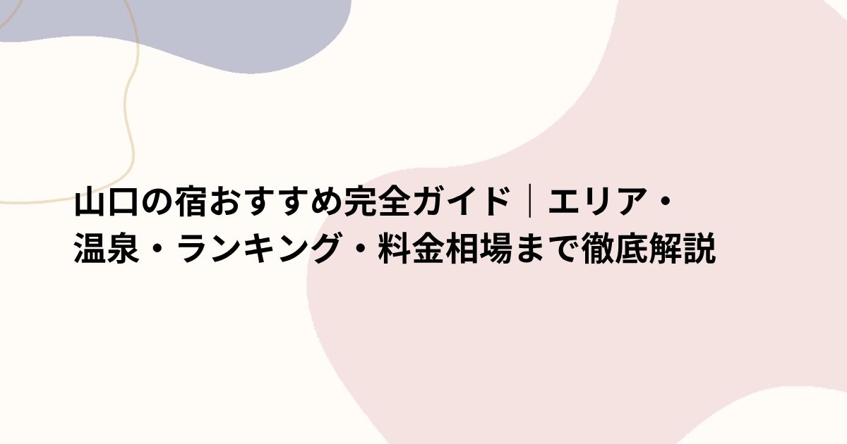 山口のおすすめ宿ランキング|人気・高級・コスパ別に紹介