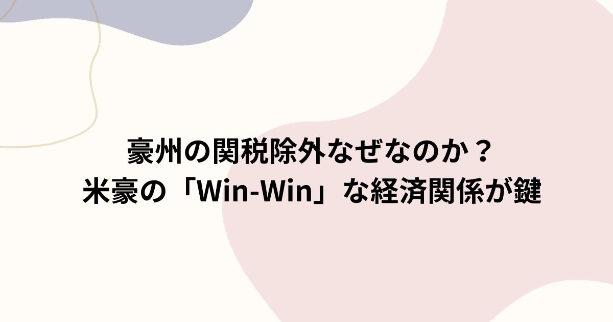このように、オーストラリアへの関税除外は、単なる経済的な判断だけでなく、両国の包括的な関係性を反映した結果といえます。