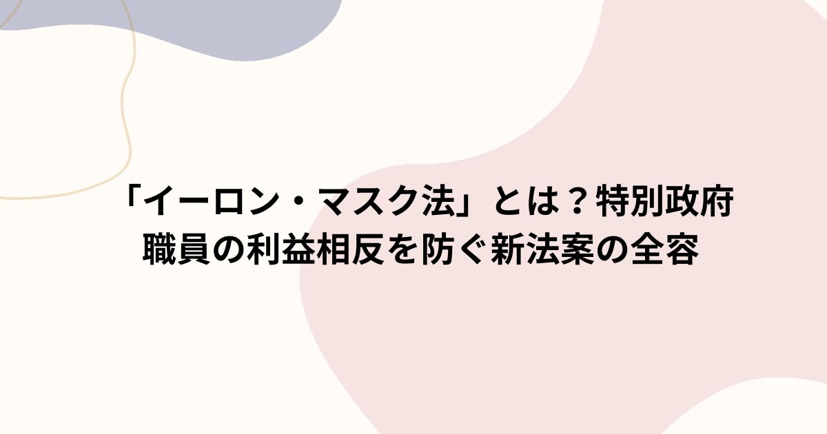 「イーロン・マスク法」とは?特別政府職員の利益相反を防ぐ新法案の全容
