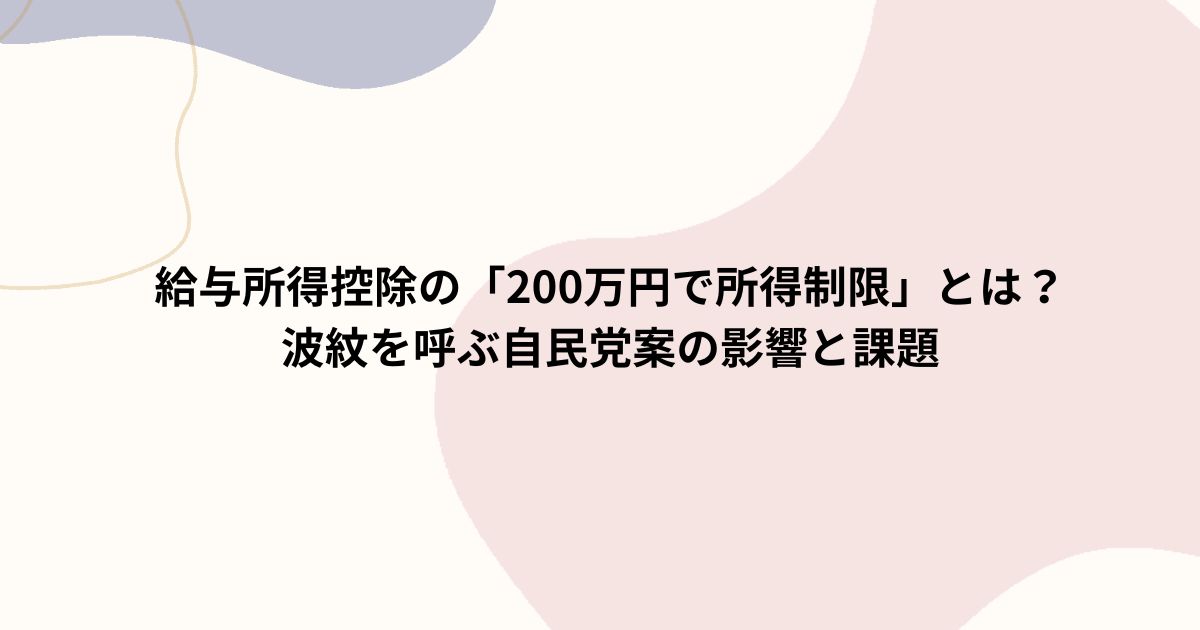 所得税における給与所得控除の見直しを巡り、自民党が提示した年収200万円での所得制限案が大きな議論を呼んでいます。