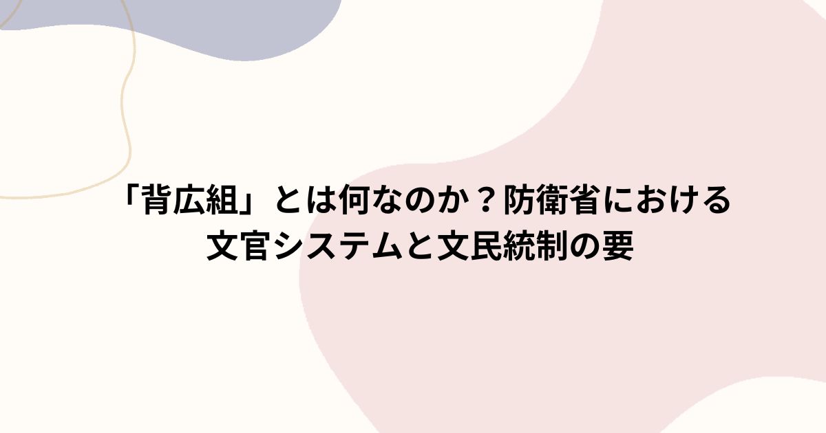 防衛省における「背広組」は、制服を着用する自衛官と区別される文官の事務官を指す通称です。