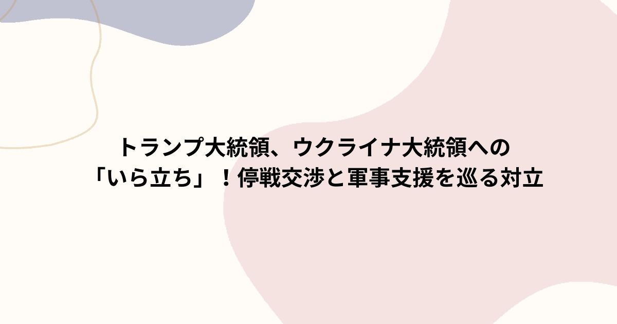 2025年2月、ロシアとウクライナの戦争終結に向けた交渉において、トランプ大統領のゼレンスキー大統領に対する「いら立ち」が表面化しています。