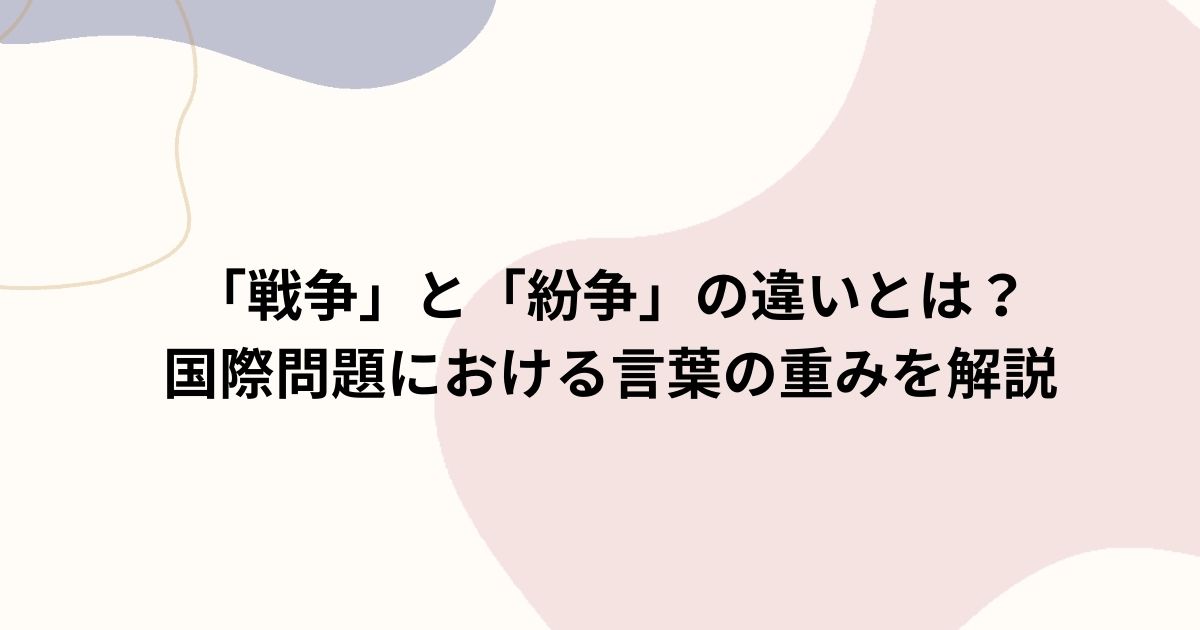 この微妙な言葉の選択には、国際政治における深い意味合いが隠されています。今回は「戦争」と「紛争」という言葉の違いとその政治的含意について考察します。