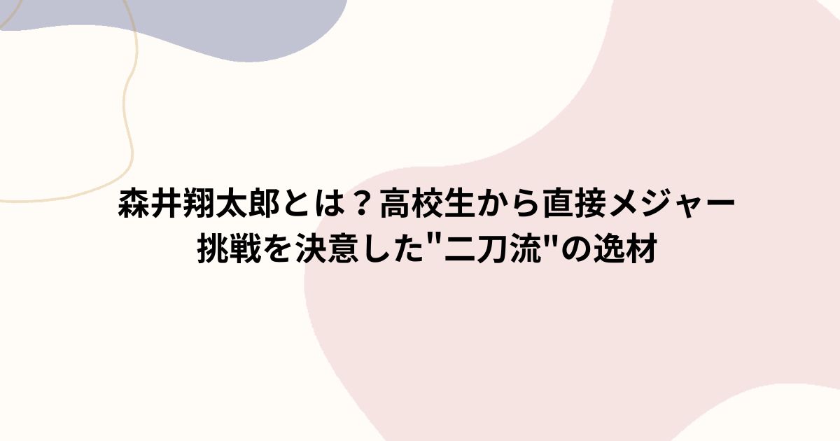 2025年の日本野球界に、新たな歴史が刻まれました。東京・桐朋高校の森井翔太郎選手が、日本のプロ野球を経ずに直接メジャーリーグのオークランド・アスレチックスとマイナー契約を結んだのです。
